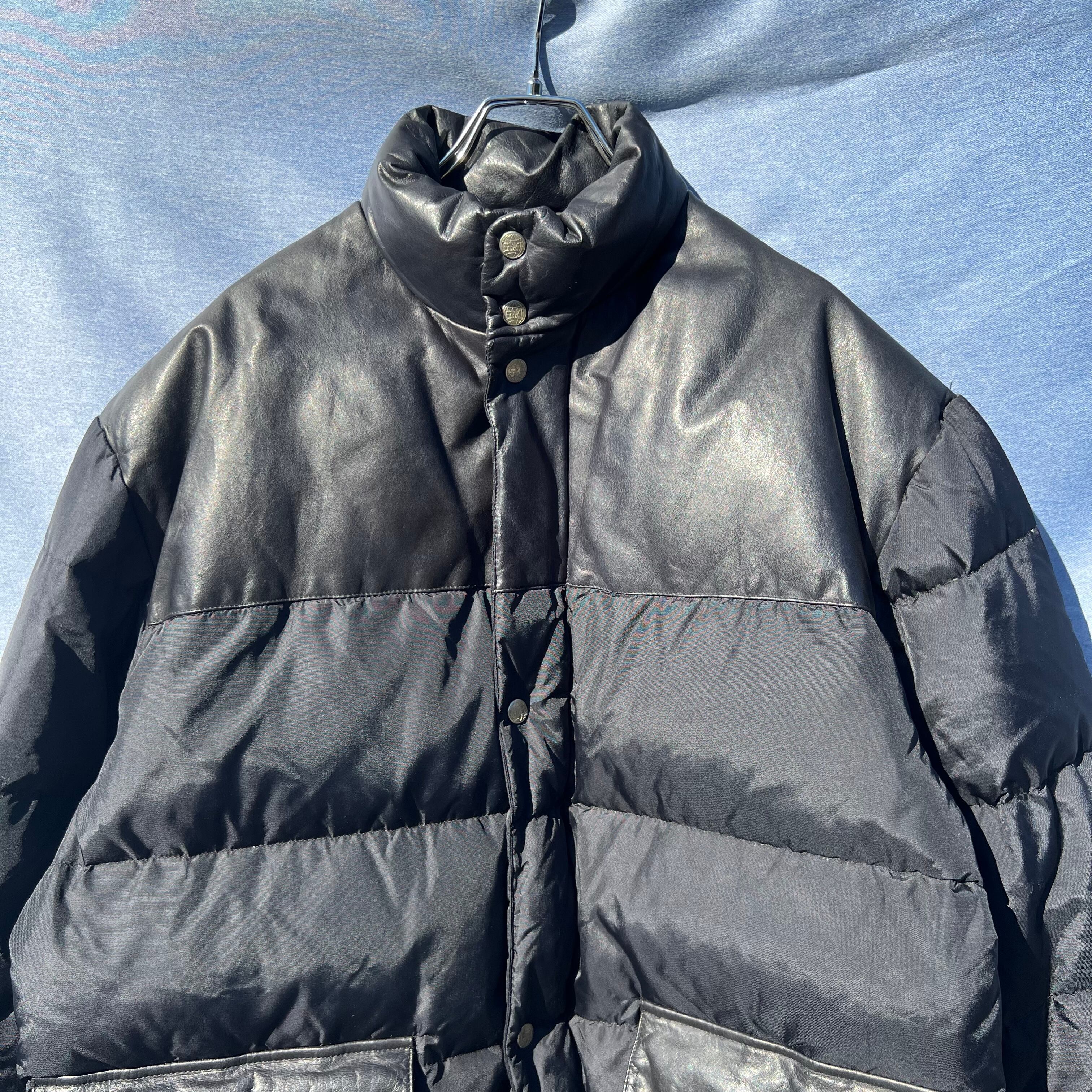 90s "GMT" Leather&Nylon Down Jacket